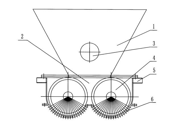所述破碎刀具及其刀尖的排布方式可以有以下兩種:第一種方式,所有破碎刀具的刀尖分為縱向的若干列,而每一列中的所有刀尖呈“人字”形排列;第二種方式,所有破碎刀具的刀尖在破碎轉(zhuǎn)子外圍的圓柱面上沿一條螺旋線排列。此外,為進一步保證破碎質(zhì)量,在破碎倉內(nèi)的側(cè)上部安裝有梳狀泥石分離器,以將較硬的石塊分離出來。不僅提高了土壤的破碎效率,并且破碎質(zhì)量得到了保證,能夠滿足高等級公路的施工要求。