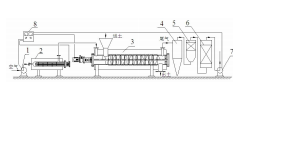 6. 根據(jù)權(quán)利要求 所述的強制通風(fēng)-螺旋攪拌土壤熱解吸修復(fù)有機污染土壤的系統(tǒng),其特 征在于 :所述尾氣處理系統(tǒng)由旋風(fēng)除塵器、除濕器和吸附塔組成,旋風(fēng)除塵器 、除濕器和吸附塔依次連接在螺旋攪拌熱解吸系統(tǒng)的螺旋攪拌熱解吸裝置 和引風(fēng)機之間。
