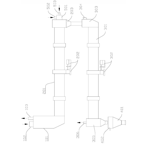 土壤熱解吸修復(fù)系統(tǒng)涉及污染土壤修復(fù)技術(shù)領(lǐng)域,尤其是涉及一種有機(jī)污染土壤熱解吸修復(fù)系統(tǒng)及工藝,該有機(jī)污染土壤熱解吸修復(fù)系統(tǒng),包括預(yù)加熱器系統(tǒng)、高溫?zé)峤馕G系統(tǒng)、低溫?zé)峤馕飨到y(tǒng)和土壤出料系統(tǒng);所述預(yù)加熱器系統(tǒng)、所述高溫?zé)峤馕G系統(tǒng)、所述低溫?zé)峤馕飨到y(tǒng)和所述土壤出料系統(tǒng)依次相連通。本發(fā)明通過設(shè)置預(yù)加熱器系統(tǒng)以充分利用高溫?zé)峤飧G系統(tǒng)產(chǎn)生的高溫尾氣,提高了熱能利用率;通過高溫?zé)峤馕G系統(tǒng)、低溫?zé)峤馕飨到y(tǒng)分別處理不同污染程度的有機(jī)污染土壤,大大降低了熱解吸處理的能耗,運(yùn)行成本低。
