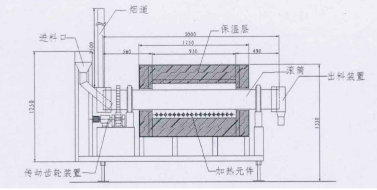 熱解吸系統(tǒng)的主體由傾斜的圓柱狀滾筒構(gòu)成,滾筒的內(nèi)部有電加熱裝置,土壤進(jìn)入受熱滾筒后向前輸送,經(jīng)過內(nèi)部多處擋板的充分?jǐn)嚢柰寥篮蜔醾鬟f,加速處理效果。