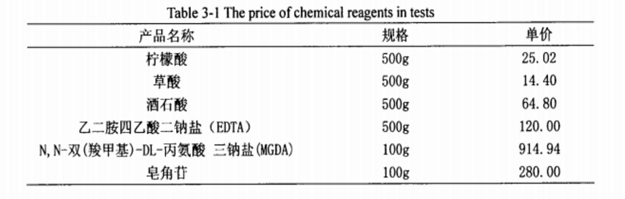 有機(jī)酸的價(jià)格比人工螯合劑和生物表面活性劑較低廉,同時(shí),檸檬酸和酒石酸對(duì)于提取土壤中的重金屬元素具有明顯的優(yōu)勢(shì),考慮到經(jīng)濟(jì)因素,檸檬酸是比較合理的重金屬污染土壤淋洗試劑。