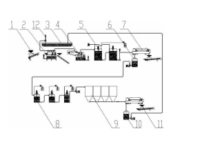 土壤淋洗修復(fù)成套設(shè)備,包括依次逐級串接的螺旋輸送機、初篩分離機、細篩分離機、加酸攪拌池、離心分離機、污水池、加堿攪拌池、沉淀池和壓濾機。采取初篩淋洗,細篩淋洗將土壤中的重金屬離子和其他污染物與從土壤中分離至水中,經(jīng)過兩級酸池氧化將金屬離子與酸中的陰離子結(jié)合后熔與水中,再經(jīng)過離心分離機將含有污染物的水和去除污染物的泥進行分離;含污染物的水經(jīng)過堿池的還原后與氫氧根反應(yīng)以沉淀形式從污水中分離,沉淀物經(jīng)絮凝后進入到四級沉淀池沉淀后固液分離,分離出的水可以回收用于初篩淋洗。其工藝設(shè)計合理,處理效果,處理成本低,且使用范圍廣。